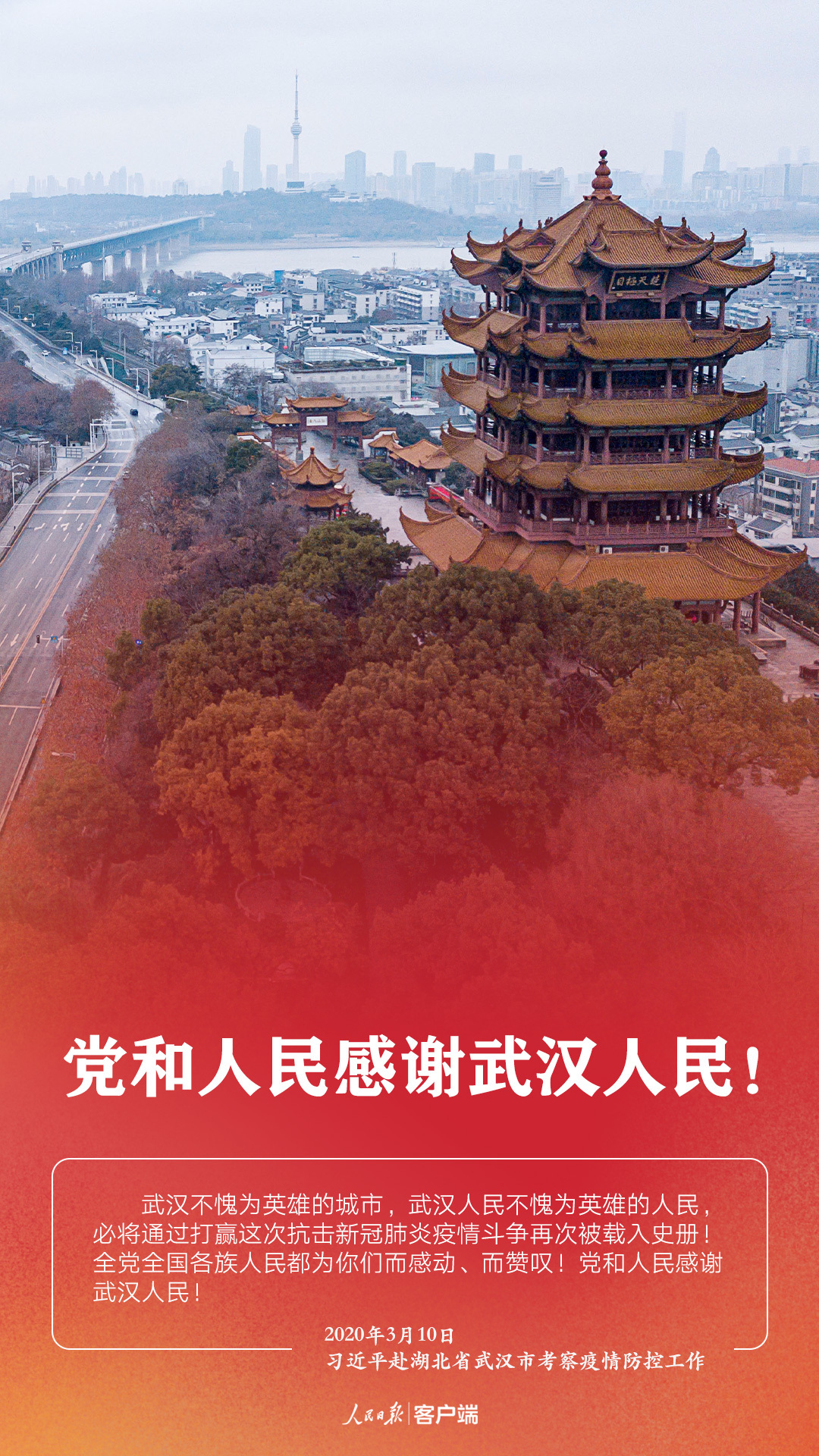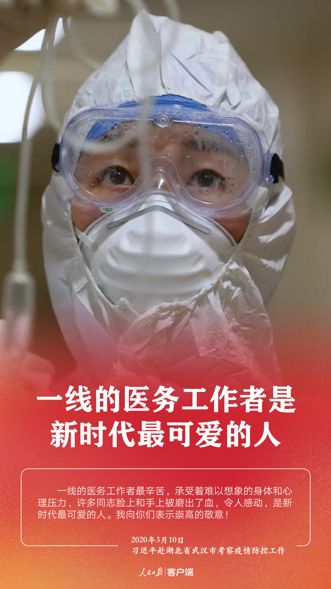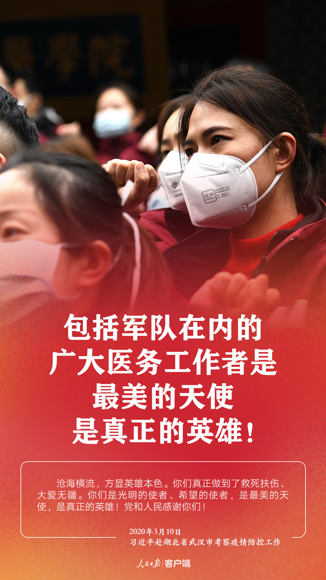 3月10日,在抗擊新冠肺炎疫情的關(guān)鍵時刻,習(xí)近平總書記專門赴湖北省武漢市考察疫情防控工作。他強(qiáng)調(diào),湖北和武漢是這次疫情防控斗爭的重中之重和決勝之地。在這場嚴(yán)峻斗爭中,湖北各級黨組織和廣大黨員、干部沖鋒在前、英勇奮戰(zhàn),全省醫(yī)務(wù)工作者和援鄂醫(yī)療隊(duì)員白衣執(zhí)甲、逆行出征,人民解放軍指戰(zhàn)員聞令即動、勇挑重?fù)?dān),廣大社區(qū)工作者、公安干警、基層干部、下沉干部...