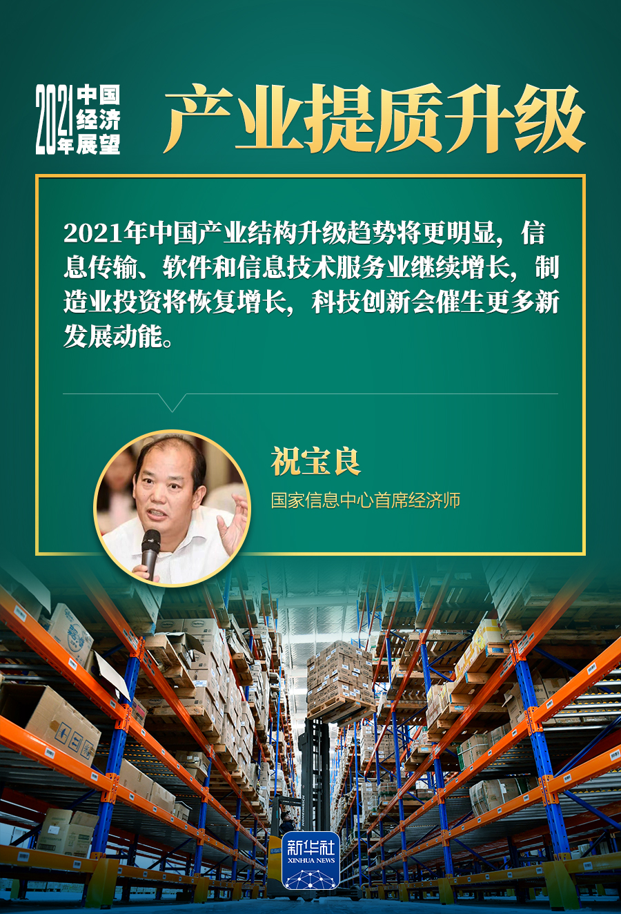 國家信息中心首席經(jīng)濟師祝寶良說,2021年中國產(chǎn)業(yè)結(jié)構(gòu)升級趨勢將更明顯,信息傳輸、軟件和信息技術(shù)服務業(yè)繼續(xù)增長,制造業(yè)投資將恢復增長,科技創(chuàng)新會催生更多新發(fā)展動能。