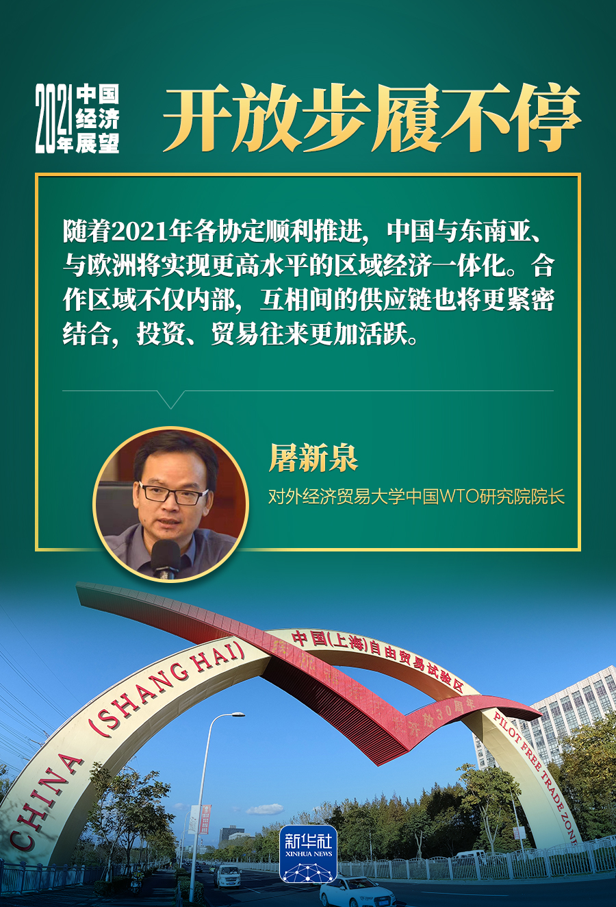 “隨著2021年各協(xié)定順利推進,中國與東南亞、與歐洲將實現(xiàn)更高水平的區(qū)域經(jīng)濟一體化。”對外經(jīng)濟貿(mào)易大學(xué)中國WTO研究院院長屠新泉說,“合作區(qū)域不僅內(nèi)部,互相間的供應(yīng)鏈也將更緊密結(jié)合,投資、貿(mào)易往來更加活躍。”