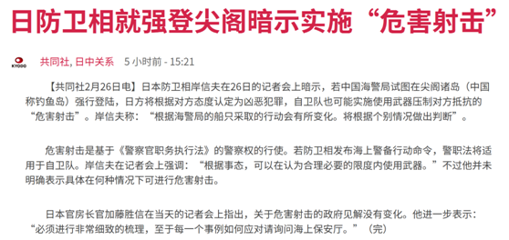 認可“危害射擊”,是日本政府首次表明態(tài)度,這也被認為是日本方面對中國實施《海警法》的回應。