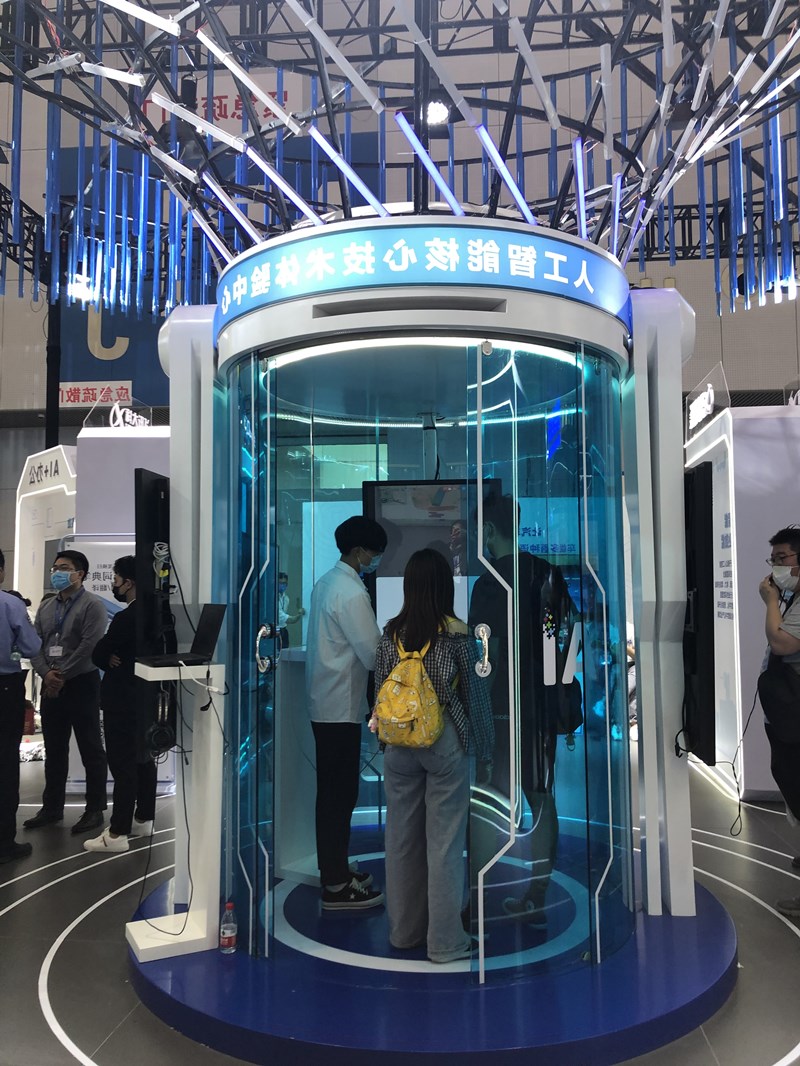 5月20日,在天津梅江會展中心,參觀者在體驗(yàn)智能科技。新華社記者 宋瑞 攝