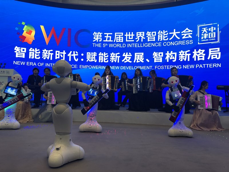 5月20日,在天津梅江會展中心,機(jī)器人在演奏樂曲。新華社記者 宋瑞 攝