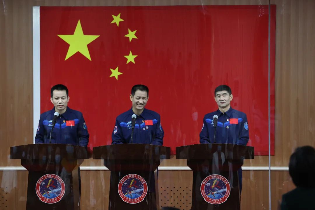 今天上午11時(shí),聶海勝、劉伯明、湯洪波三名航天員在酒泉衛(wèi)星發(fā)射中心問天閣與中外媒體記者集體見面。這是神舟十二號(hào)飛行乘組的首次亮相。