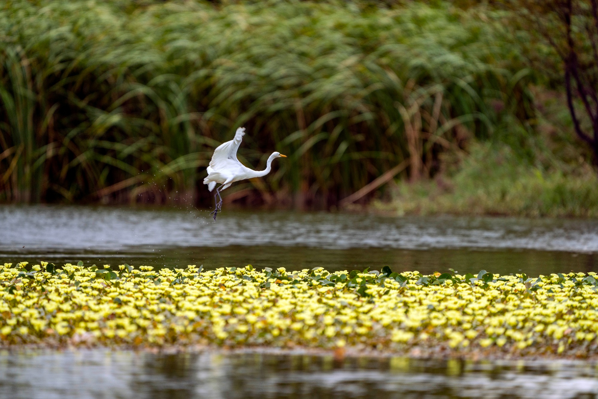↑水鳥在昆明寶豐半島濕地嬉戲(9月25日攝)。 新華社記者 江文耀 攝