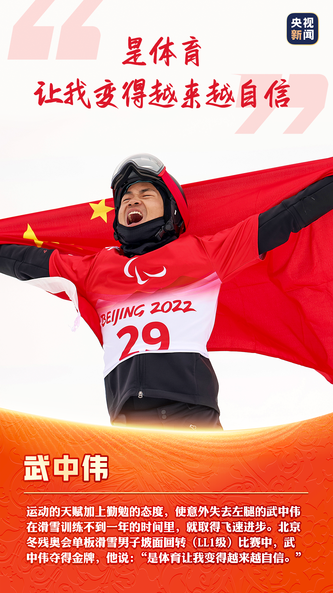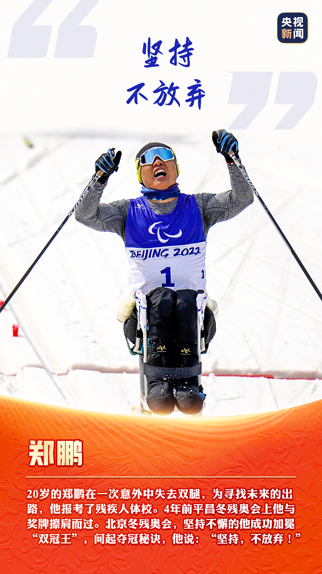 3月13日,北京冬殘奧會圓滿閉幕,中國隊以獎牌榜第一的成績順利收官。中國殘疾人運(yùn)動員們在賽場上留下了耀眼的成績,更傳遞了自強(qiáng)不息的精神。“堅持,不放棄!”“想讓國旗在最高處!”……這些話語展現(xiàn)了運(yùn)動員們的頑強(qiáng)拼搏、積極樂觀。看圖,致敬每一份奮斗和堅持!