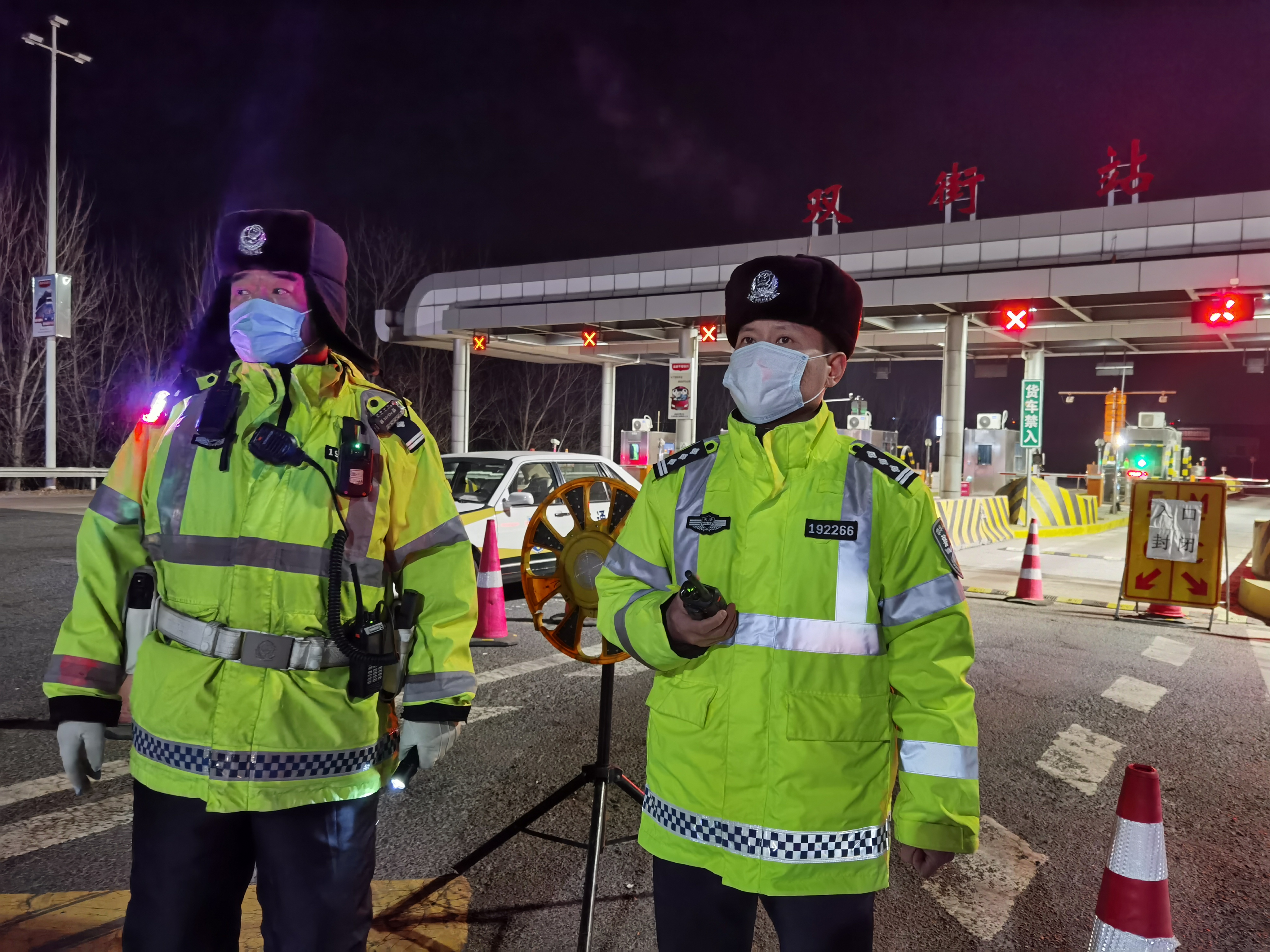 張楊(右)在高速公路卡口值守。(受訪者供圖)