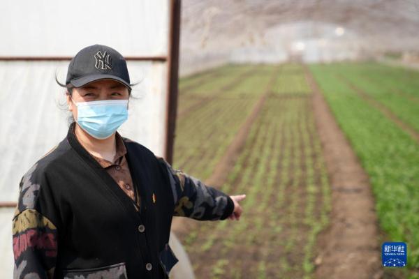 4月19日,在哈爾濱市道外區(qū)民主鎮(zhèn)光明村,村黨支部書(shū)記唐艷麗在介紹種植情況。