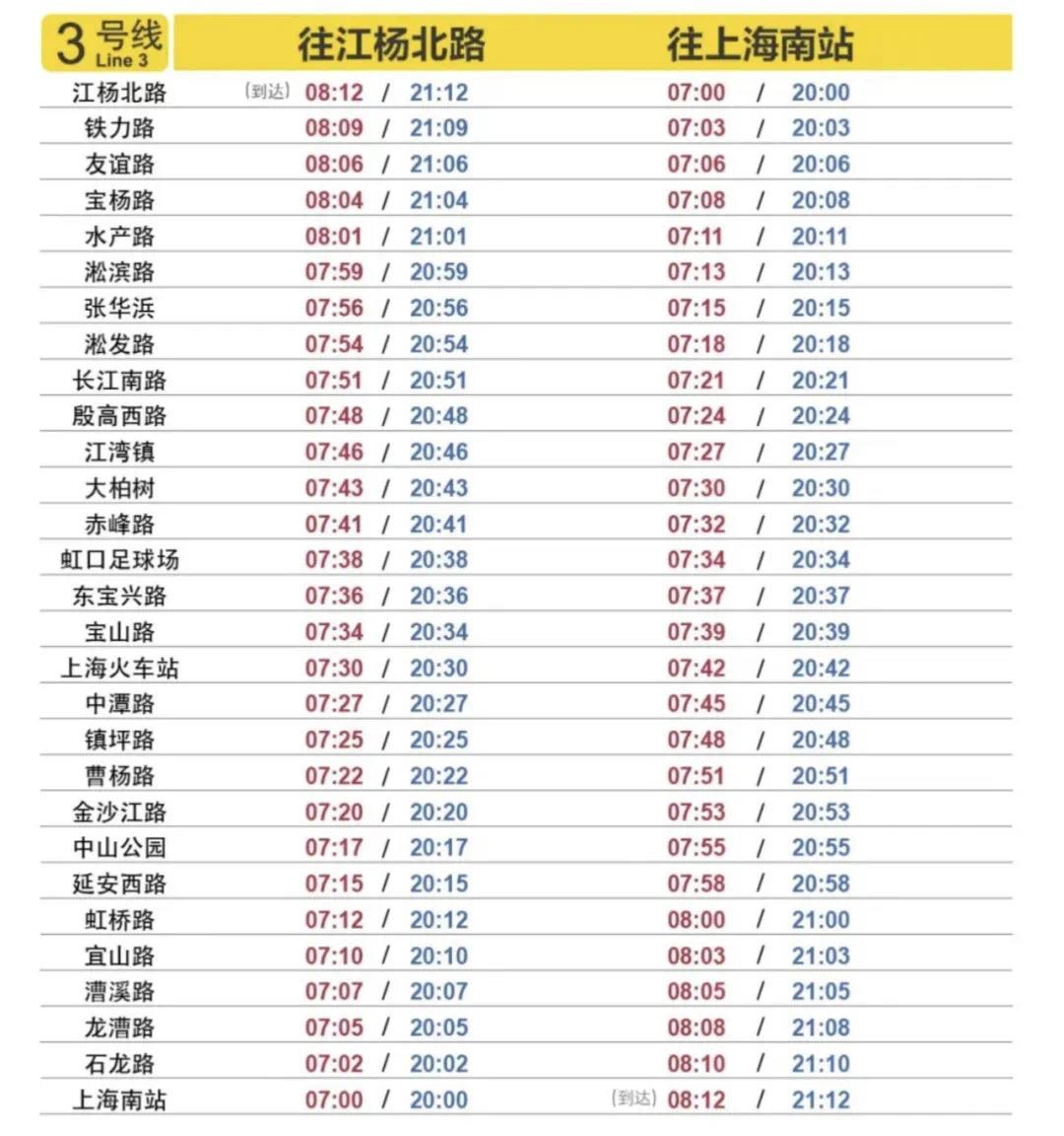 軌交3號線、10號線運營時段為7:00-20:00。其間,線路起訖站雙向首末班車時間均為7點和20點,途經(jīng)車站發(fā)車時間根據(jù)列車運行圖順延。