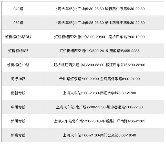 目前,地面公交連接鐵路上海站、上海虹橋站的始發(fā)線路19條,班次間隔原則上不大于60分鐘。