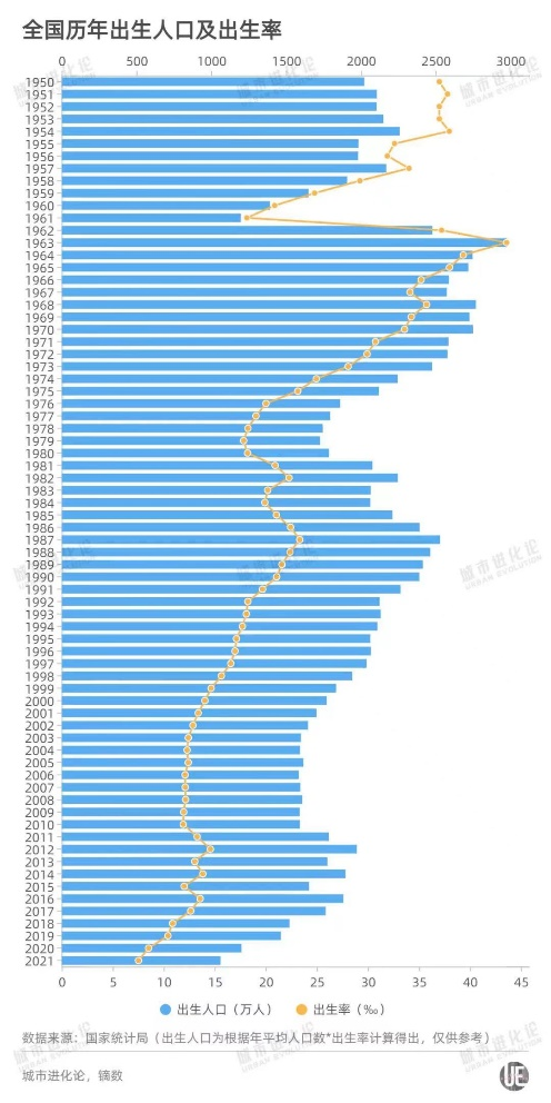 其中值得注意的是,1963年出生的人口是近70年來的最高值,新生兒多達2975萬人,出生率為43.60‰。這也意味著,明年退休的人數(shù)可能更多。