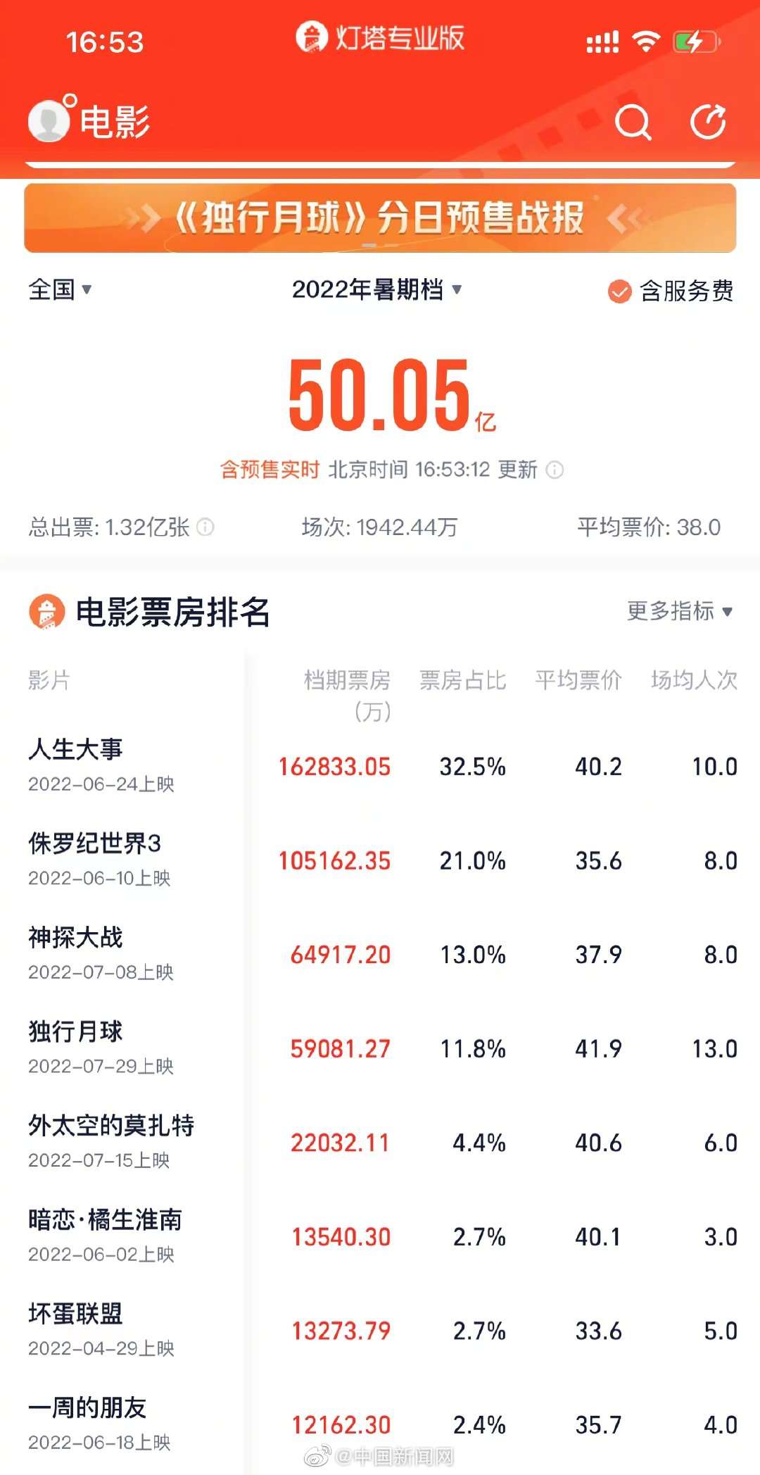 據(jù)燈塔專業(yè)版,截至7月30日16時53分,2022暑期檔總票房已達50.05億。目前票房前三名為:《人生大事》《侏羅紀世界3》《神探大戰(zhàn)》。這個暑期,你看了哪部電影?