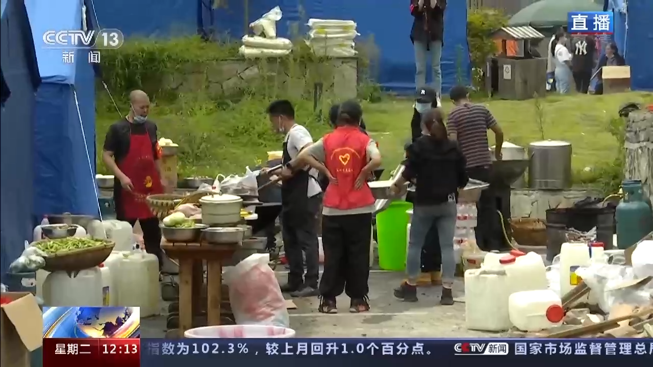 我們現(xiàn)在所在的是其中的一個小的安置點,大概安置了五百人。生火做飯的場景是今天中午才有的。在此之前他們一直是在喝礦泉水或者是泡個泡面。因為有大量的物資得以進(jìn)入震中地區(qū),今天中午他們終于可以吃上熱飯了,相信隨著更多的救援物資到來,他們的安置條件也會不斷地改善。