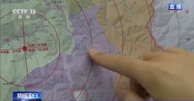 結(jié)合這個圖,我們來看目前救援的重點。紅心所在的位置就是震中,我們現(xiàn)在所在位置是磨西鎮(zhèn),距離震中大概八公里。目前,磨西鎮(zhèn)的六個村,有四個村已經(jīng)完成了排查,另外兩個村各方力量還在進(jìn)行全域搜救。