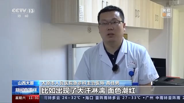 太原市人民醫(yī)院急診科主治醫(yī)師 高佳男:如果中暑,很快轉(zhuǎn)移到陰涼通風(fēng)處,適當(dāng)多補(bǔ)水,用一些辦法降溫。如果癥狀加重,比如出現(xiàn)了大汗淋漓、面色潮紅,一定要去及時就診。