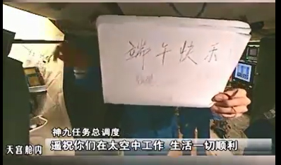 △神舟九號(hào)航天員乘組在太空送出端午節(jié)祝福