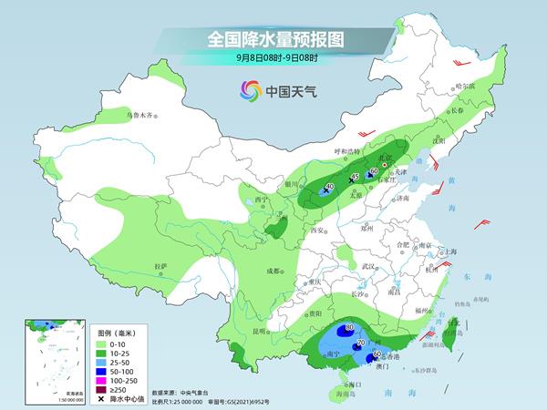 明天,甘肅南部、寧夏東部、陜西北部、山西北部、河北中北部、北京、湖南南部、廣西大部、廣東大部、臺(tái)灣島大部等地部分地區(qū)有中到大雨,其中,河北中部、廣西東北部和東部、廣東西部和南部沿海地區(qū)等地局部地區(qū)有暴雨(50~80毫米)。