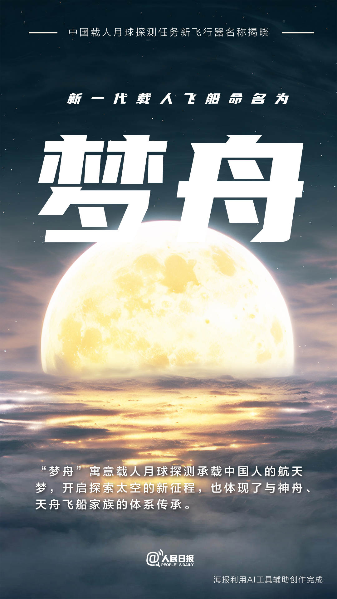 新飛行器的名稱具有鮮明的中國特色、時代特色和文化特色。“夢舟”寓意載人月球探測承載中國人的航天夢,開啟探索太空的新征程,也體現(xiàn)了與神舟、天舟飛船家族的體系傳承;新一代載人飛船包括登月版和后續(xù)執(zhí)行空間站任務的近地版兩個型號,其中,登月版采用“夢舟Y”(飛船名稱+“月”字音節(jié)的大寫首字母)。“攬月”取自毛主席詩詞“可上九天攬月”,彰顯中國人探索宇宙、登陸月球的豪邁與自信。此前,新一代載人運載火箭已被命名為“長征十號”。