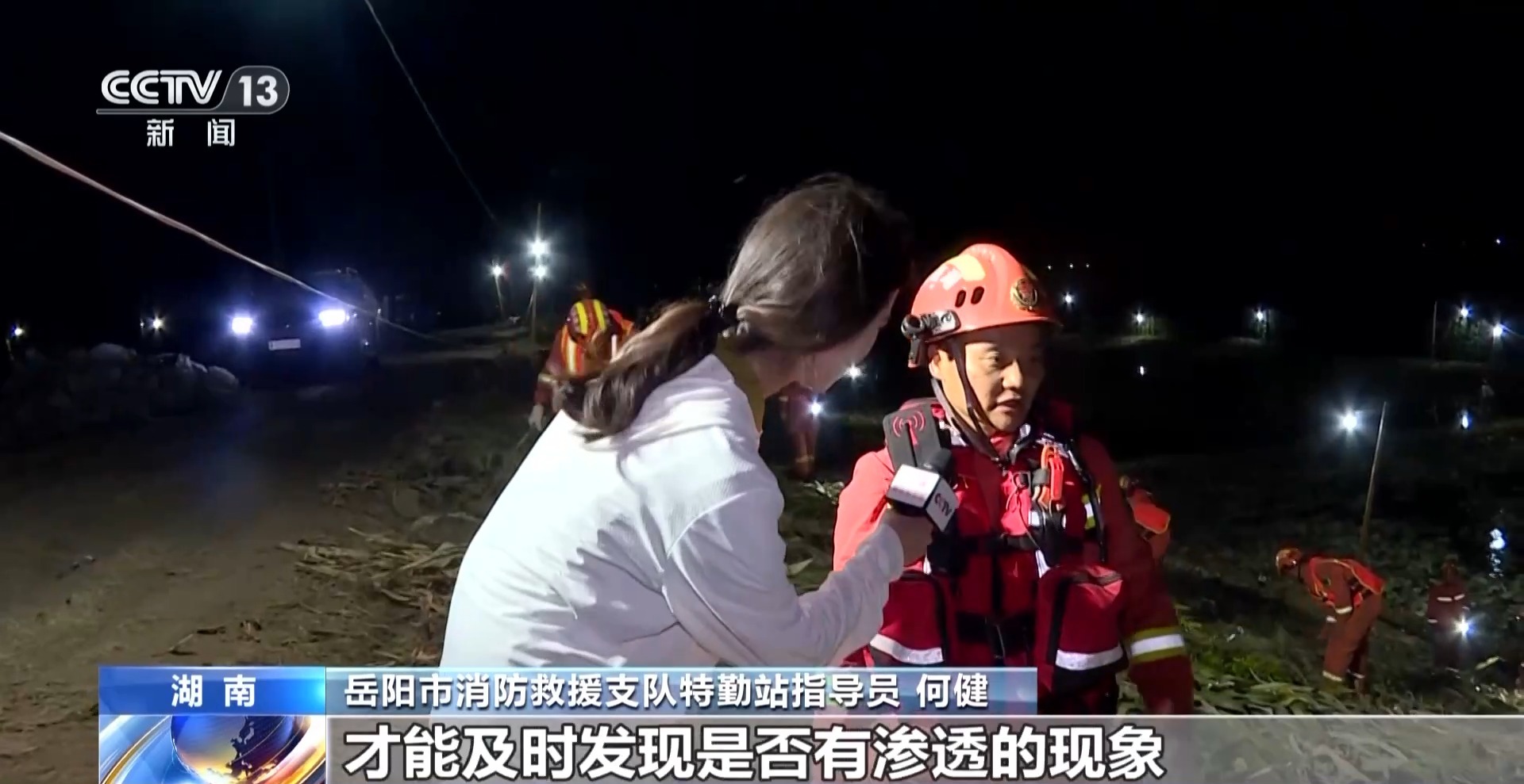 岳陽(yáng)市消防救援支隊(duì)特勤站指導(dǎo)員 何健:因?yàn)檠驳淌锹ぞ?xì)活,只求精細(xì)不求快,每次巡堤必須仔細(xì),晚上就更難,只能打著手電細(xì)細(xì)地尋找,如果第一排沒(méi)有發(fā)現(xiàn),我們第二排可以及時(shí)補(bǔ)漏。
