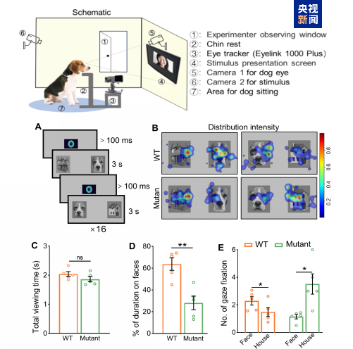 研究發(fā)現(xiàn)這一基因突變?nèi)诿婵灼玫男袨槿蝿?wù)中表現(xiàn)出對房子感興趣,對人臉和同類犬面孔則表現(xiàn)出沒有興趣。眼動追蹤的實驗結(jié)果進一步支持了這種異常的行為偏好。另外,在皮層腦電記錄分析等研究中,這一基因突變?nèi)诧@示出異常現(xiàn)象。