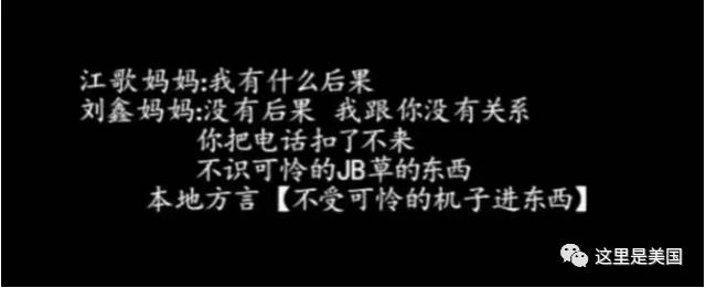 江歌媽媽無助之下公布了劉鑫的信息,逼劉鑫現(xiàn)身。劉鑫的母親卻給江歌媽媽打來電話,對其進行惡毒的謾罵: