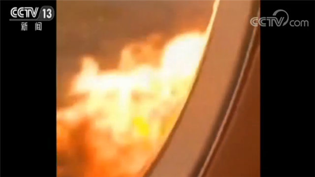 手機視頻記錄機艙外起火畫面