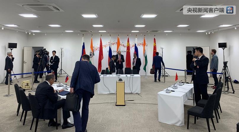 △工作人員正在中俄印領(lǐng)導(dǎo)人會晤現(xiàn)場等待。(央視記者章猛拍攝)