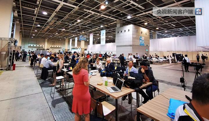 △各國記者在G20新聞中心密切關(guān)注峰會進(jìn)展。(央視記者荊偉拍攝)