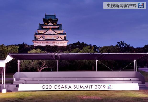 △28日晚,習近平主席和其他與會領導人參加了安倍晉三首相在大阪迎賓館舉行的G20峰會歡迎晚宴。這是宴會廳外草坪的合影區(qū)。遠處就是著名的天守閣。(央視記者李錚拍攝)