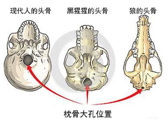 但這次發(fā)現(xiàn)的這塊湖畔種頭骨化石,恰好能證明“直立行走”這一關(guān)鍵點。“因為直立姿態(tài)使頭部在脊柱正上方,所以人類的枕骨大孔在頭骨最底部。而猩猩和其他大多數(shù)哺乳動物的枕骨大孔,都位于頭骨后端,適應(yīng)于四足行走的姿態(tài)。”潘雷說。