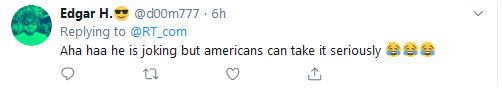 有網(wǎng)友哭笑不得:“哈哈,他是在開玩笑啊,但美國人居然當(dāng)真了。”↓
