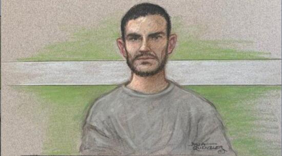 莫里斯·羅賓遜通過視頻接受庭審的畫像,圖源:BBC