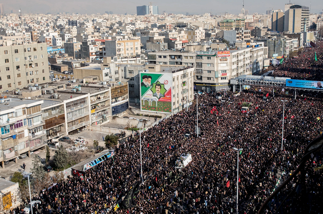 德黑蘭6日為蘇萊曼尼舉行的悼念儀式,圖源:《紐約時(shí)報(bào)》