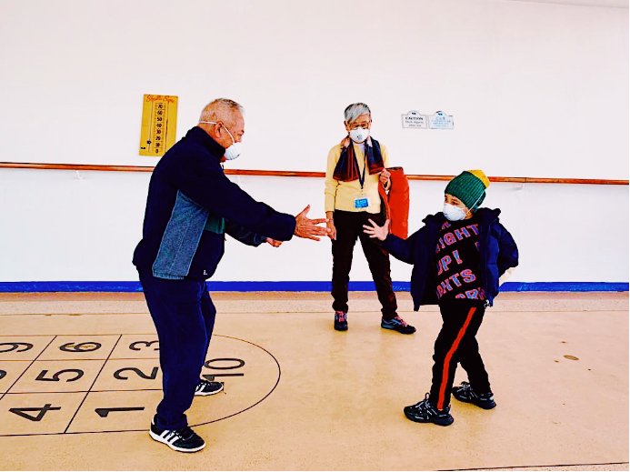 2月17日,黃雅曦的父母在“放風(fēng)”期間陪孫子玩“石頭剪刀布”,在無聊的隔離期間打發(fā)時間