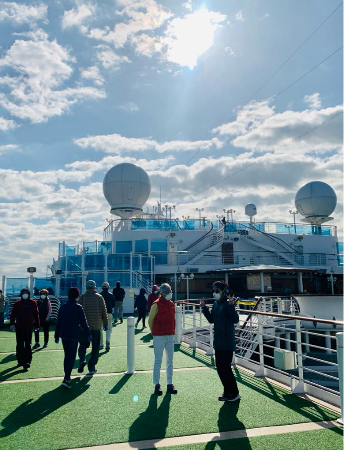 這樣的溫情時刻還有許多。在這艘如同巴別塔般的大船上,許多老人語言不通,黃雅曦和一些年輕乘客主動把船上的每一則提示翻譯給他們。“我很感激有機會能在這種情況下幫助到他人,這也許就是人性吧,它能跨越50多個國家,像是黑夜里的一點光。”黃雅曦表示,盡管外界對日本應(yīng)對郵輪疫情的方式有很多批評,但作為親歷者之一,她仍理解并感謝日本衛(wèi)生部門和船上的管理者所做的一切,因為這是一場“史詩般的危機”,“沒有任何一個決策會是完美的”。