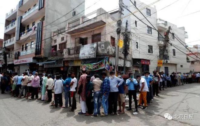 此外,在印度北方邦的許多酒鋪外也排起了長(zhǎng)隊(duì),早晨7點(diǎn)就有人開始排隊(duì)。這一幕也同樣發(fā)生在卡納塔克邦,嗜酒者們?cè)诰其仩I(yíng)業(yè)前就已開始等待。