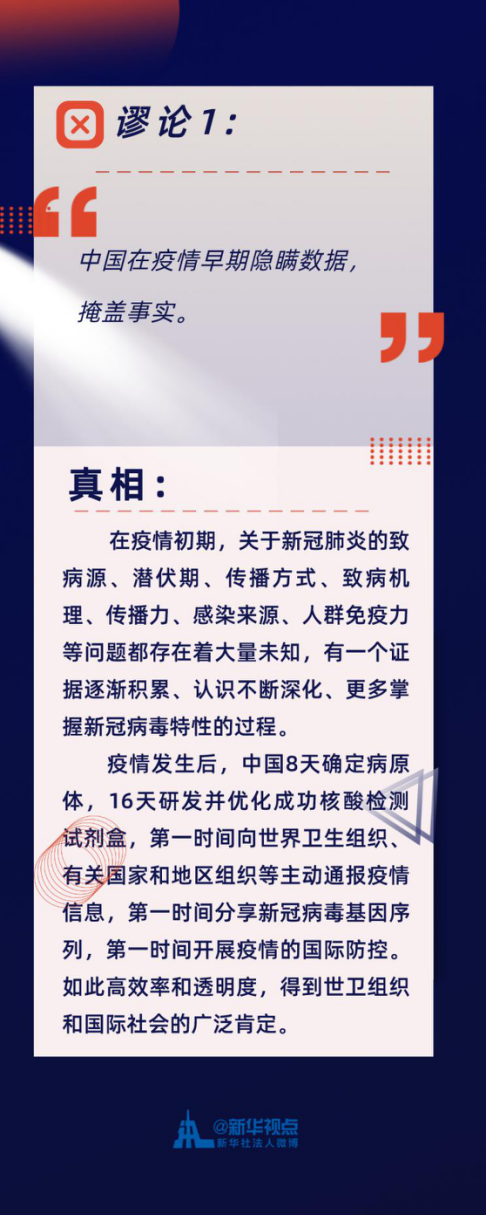 新冠肺炎疫情出現以來,美國一些政客罔顧客觀事實,一再攻擊、抹黑中國抗疫,試圖以此“甩鍋”。美國國會眾議院外交事務委員會共和黨人邁克爾·麥考爾近期公布所謂報告,即延續(xù)這一“風格”。戳下圖,對照部分謊言謬論,還原真相: