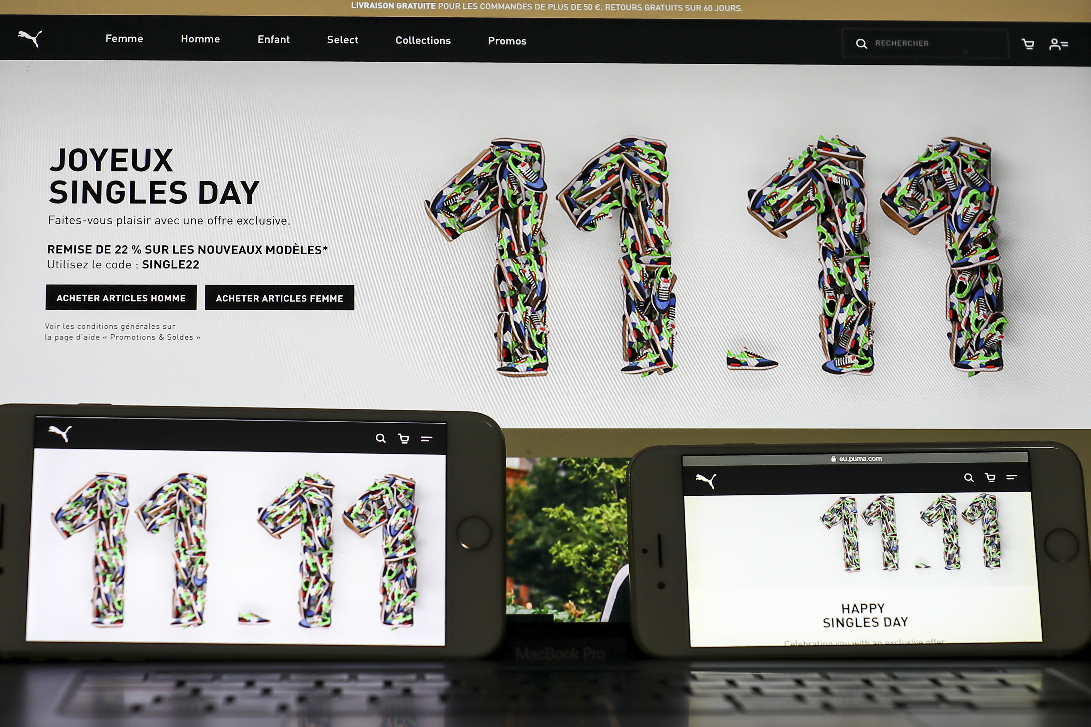 這是11月10日在比利時(shí)布魯塞爾拍攝的一個(gè)網(wǎng)站的“雙十一”促銷信息。新華社記者張鋮攝