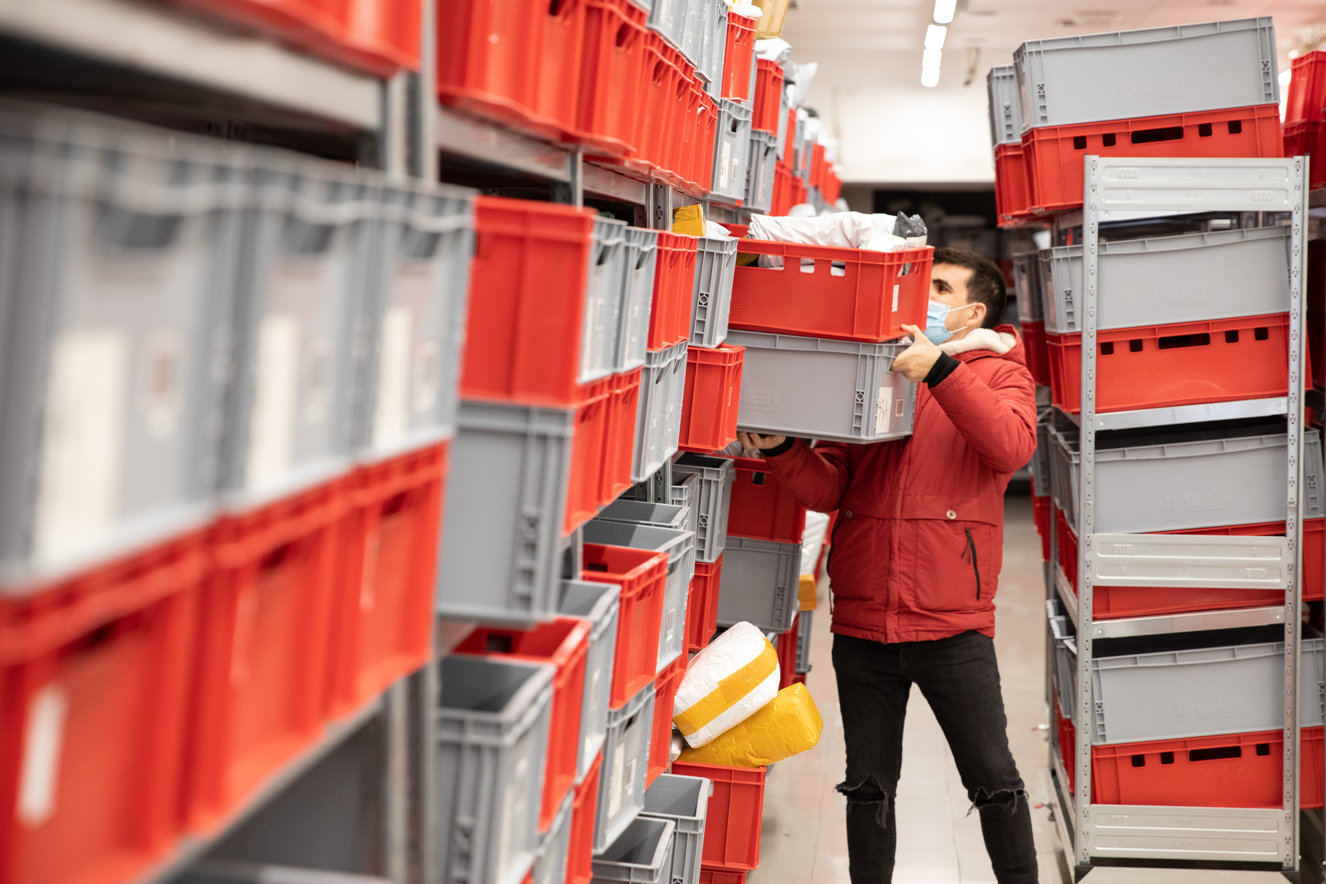 11月11日,在西班牙瓜達拉哈拉菜鳥海外倉,工作人員正在分揀商品。新華社記者 孟鼎博 攝