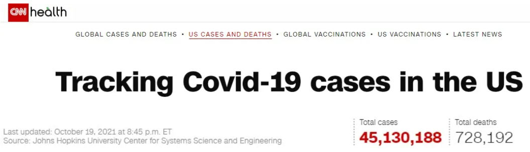 △美國有線電視新聞網(wǎng)(CNN)實(shí)時疫情數(shù)據(jù)截圖