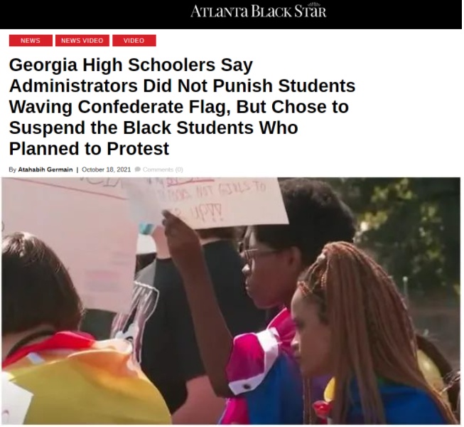 同樣是在佐治亞州,據(jù)在非洲裔美國人中頗有影響的《亞特蘭大黑星報(bào)》10月18日?qǐng)?bào)道,該州一所高中日前舉行活動(dòng),四名白人學(xué)生揮舞著象征“白人至上”和種族主義的美國內(nèi)戰(zhàn)期間南方軍隊(duì)使用的旗幟,引起該校非洲裔學(xué)生的不滿。