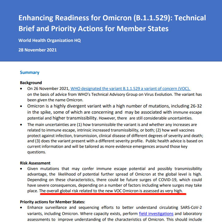綜合路透社和衛(wèi)星社消息,當(dāng)?shù)貢r(shí)間11月29日,世衛(wèi)組織在最新報(bào)告中指出,新冠變異病毒奧密克戎毒株在全球總體風(fēng)險(xiǎn)等級為“非常高”。