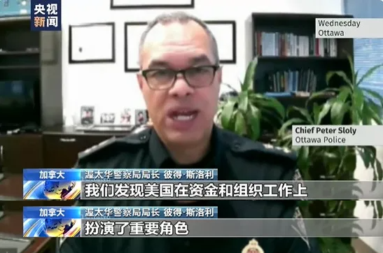 渥太華警察局局長彼得·斯洛利證實,一些來自美國的勢力不僅利用社交媒體煽風(fēng)點火,而且還直接向抗議者提供資金等幫助。
