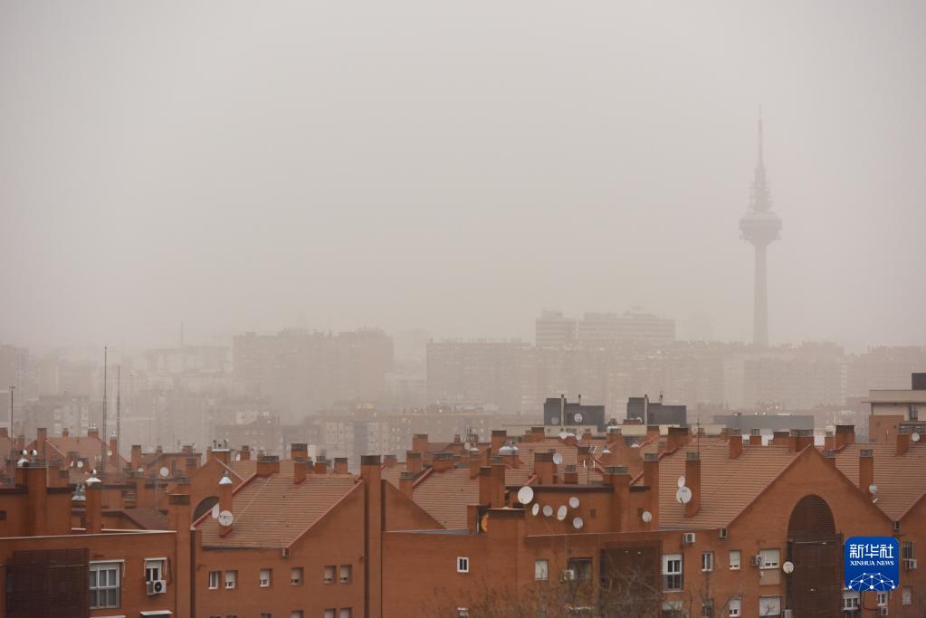 3月15日,西班牙馬德里的路面被沙塵覆蓋。新華社發(fā)(古斯塔沃·巴連特?cái)z)