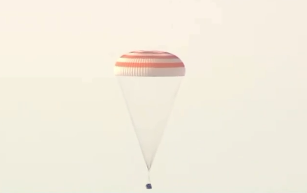 △“聯(lián)盟MS-19”號(hào)飛船返回艙著陸(視頻截圖)
