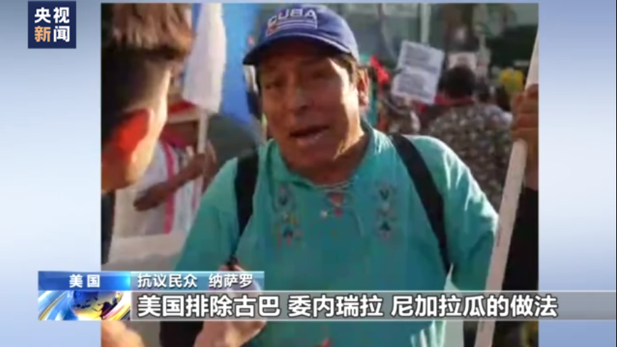 抗議民眾 納薩羅:美洲峰會(huì)本應(yīng)該是所有美洲國(guó)家的,美國(guó)排除古巴、委內(nèi)瑞拉、尼加拉瓜的做法是錯(cuò)誤的,我們強(qiáng)烈反對(duì)。主辦方美國(guó)不但沒(méi)有為所有美洲國(guó)家合作提供平臺(tái),反而將美洲國(guó)家分開(kāi)。美國(guó)必須停止干涉古巴、委內(nèi)瑞拉和尼加拉瓜的事務(wù)。