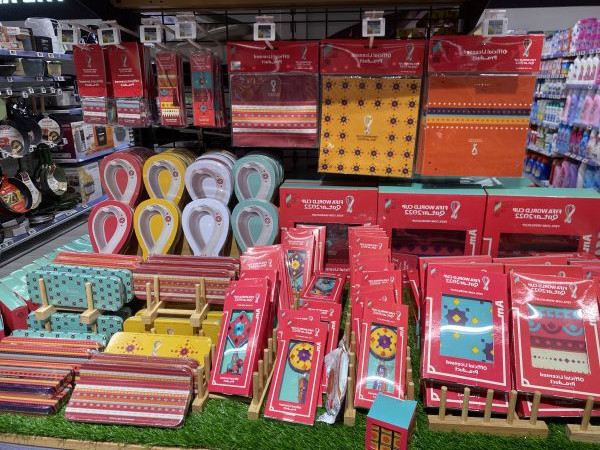 卡塔爾首都多哈一家超市售賣的世界杯周邊商品(陶然 攝)