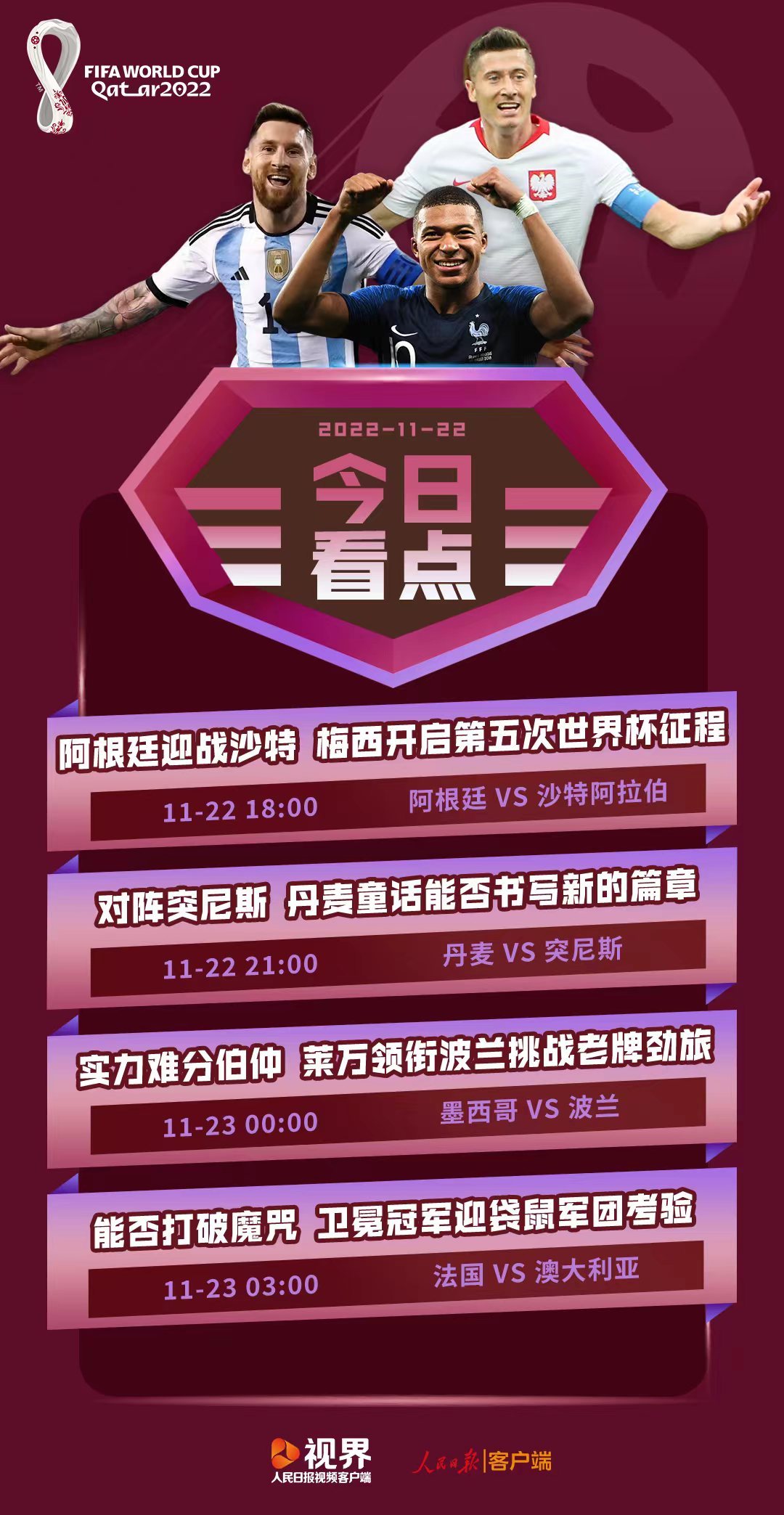北京時(shí)間22日夜間,世界杯將迎來(lái)四場(chǎng)重磅賽事。