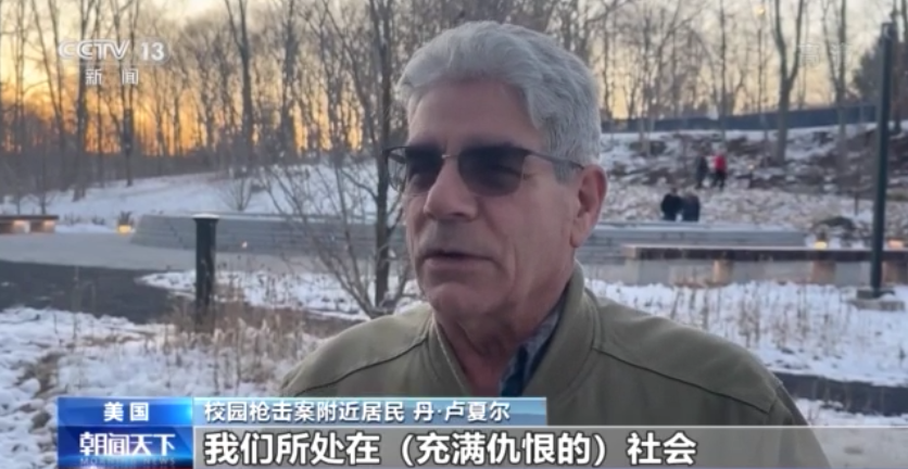 校園槍擊案附近居民 丹·盧夏爾:我們所處在(充滿仇恨的)社會,讓人們用槍來解決問題,我覺得這是很大的麻煩,好像這個國家出問題了,讓人們變得充滿暴力思想,最終都是用槍支解決問題。