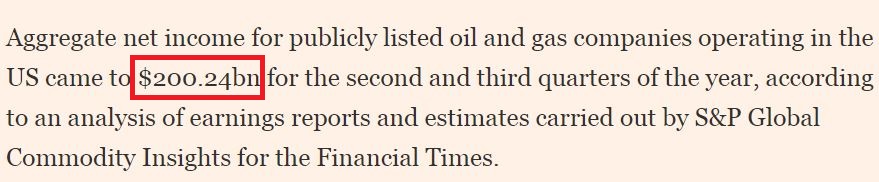 據(jù)統(tǒng)計,去年第二和第三季度,美國上市油氣企業(yè)的凈收入達到2002.4億美元。這是美國能源行業(yè)有史以來最賺錢的六個月,預(yù)計全年收入也將創(chuàng)下新高。