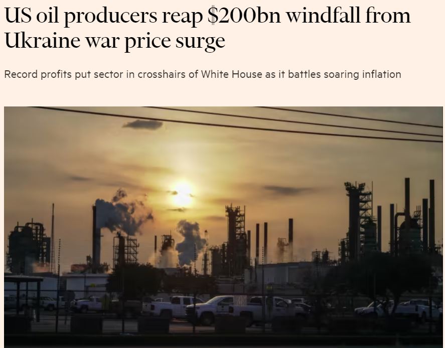 受沖突持續(xù)和美西方不斷對俄加碼制裁影響,全球大宗商品價格持續(xù)飆升,而美國的能源、糧食巨頭們也迎來了“黃金時代”。